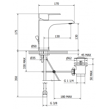 Miscelatore lavabo medio con scarico automatico VELVER Teorema
