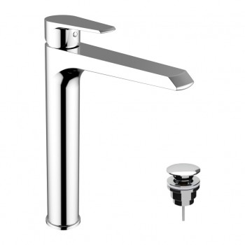 Miscelatore lavabo medio con leva in metallo con scarico automatico G 1 1/4", monocomando in ottone cromato monoforo, della linea VELVET.
