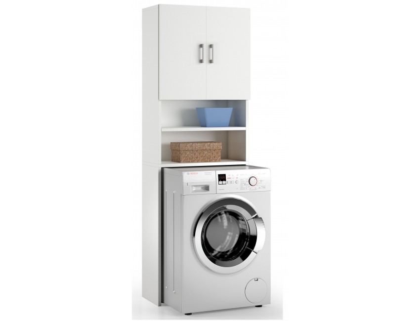 Mobile sopra lavatrice 195 cm Bianco frassinato con due ante
