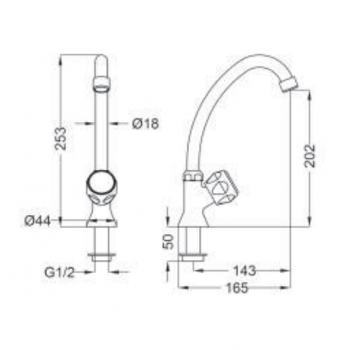 Rubinetto diretto con ingresso G1/2 cromato, attacco snodo G1/2”.