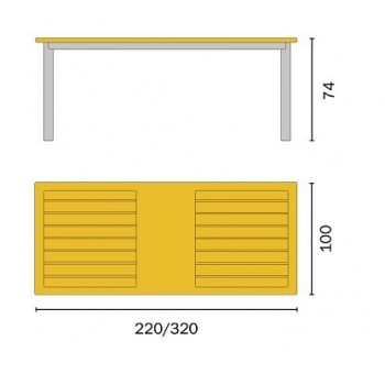 Tavolo Alicante 220x100 cm allungabile in alluminio e legno teak