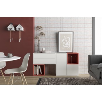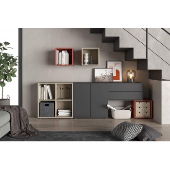 - Abbinabile a tutti i mobili della serie Lisbona: cubo 1 vano, cubo c/anta, cubo c/anta verticale, cubo con 2 cassetti, cubo 4 vani, cubo con 2 ante, top/mensola, piedini regolabili