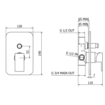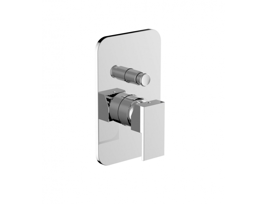 Miscelatore doccia monocomando in ottone cromato monoforo ad incasso con installazione a parete, e deviatore a 2 vie della linea pillar.