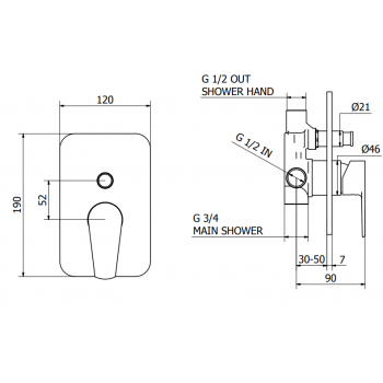 Miscelatore doccia con deviatore a 2 vie VELVER Teorema