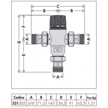 MISCELATORE TERMOSTATICO CON VALVOLE DI RITEGNO 521
