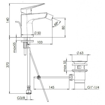 Elegante miscelatore monocomando per bidet Nobili. E' presente lo scarico e il getto dell'acqua è orientabile.