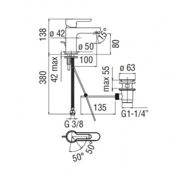 Elegante miscelatore monocomando per lavabo Nobili. E' presente lo scarico.
