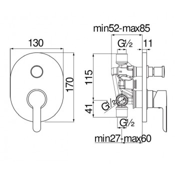 - Ingresso acqua calda e acqua fredda diam. 1/2"