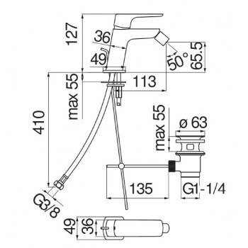 Elegante miscelatore monocomando per bidet Nobili. E' presente lo scarico e il getto dell'acqua è orientabile.