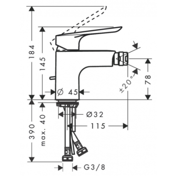 • Composto da: Miscelatore monocomando bidet, Sistema di scarico e troppopieno