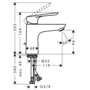 - Composto da: Miscelatore monocomando lavabo, Sistema di scarico e troppopieno