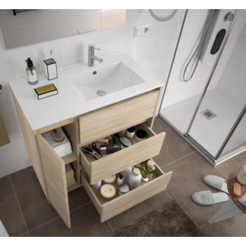 Mobile bagno a terra 85 cm in legno marrone Caledonia con lavabo a destra