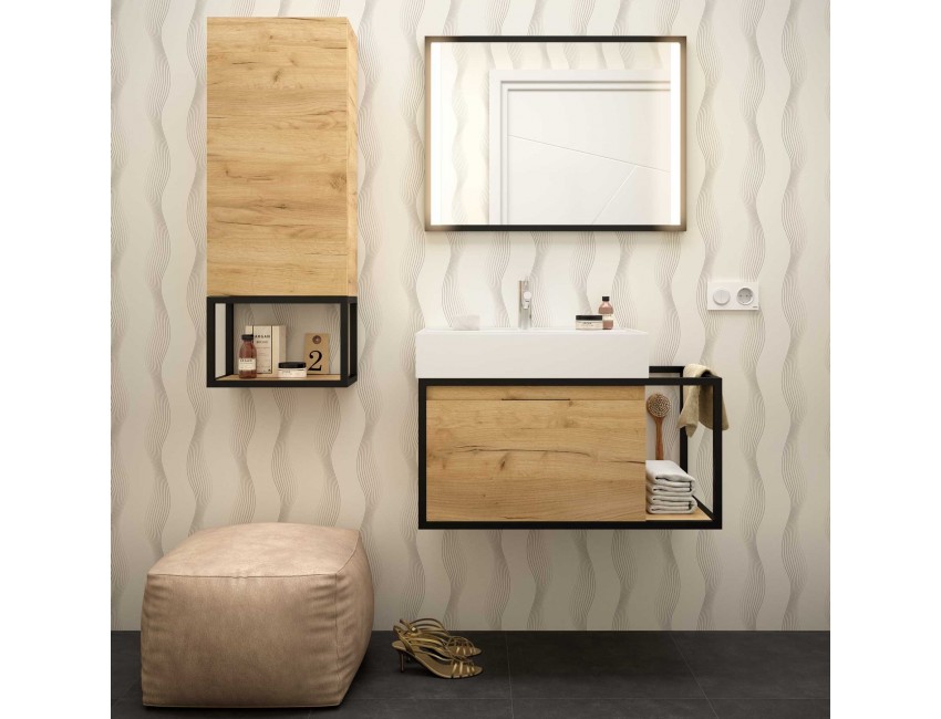Mobile bagno sospeso 80 cm con struttura in alluminio laccato nero opaco e lavabo