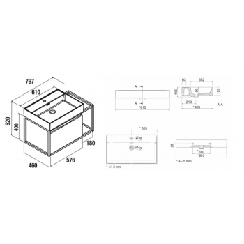 Dimensioni lavabo: L 61 x P 46 x H 12 cm