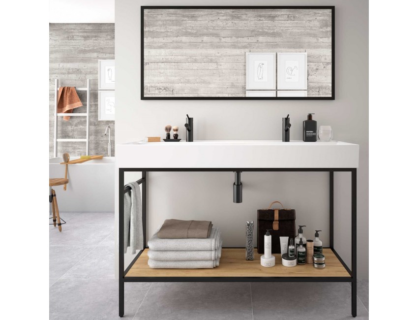 Mobile bagno a terra 120 cm con struttura in alluminio laccato nero opaco e lavabo
