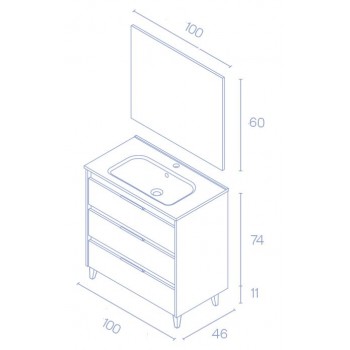 Dimensioni mobile: L 100 x P 46 x H 74 cm