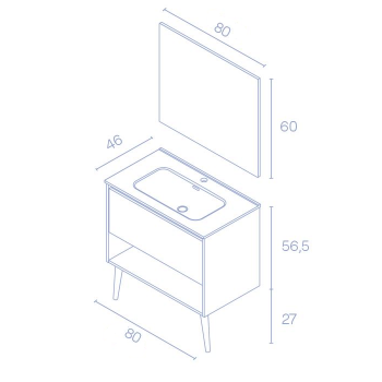 Dimensioni mobile: L 80 x P 46 x H 56,5 cm
