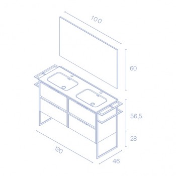Dimensioni mobile: L 120 x P 46 x H 84.5 cm
