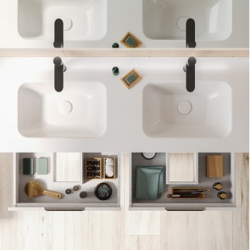 2) Lavabo in ceramica che assicura la massima resistenza all’usura e il colore bianco intatto nel tempo.