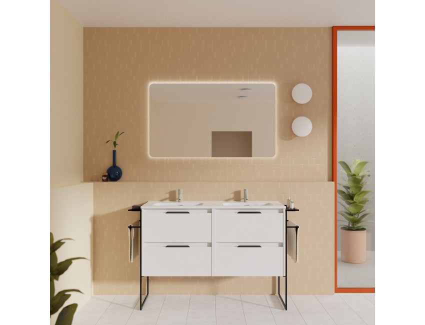 1) Mobile bagno a terra con una struttura realizzata in pannelli melaminici da 16 mm. Il prodotto è composto da 4 cassetti realizzati con guide metalliche a chiusura ammortizzata e accessibilità totale all'interno del cassetto. Le maniglie sono metalliche in finitura nera opaca integrate nella parte superiore del frontale dei cassetti. Sono INCLUSI i supporti per il fissaggio alla parete. L'interno dei cassetti è fabbricato in texture grigia. Le gambe sono metalliche in finitura nera opaca ed incorporano un vassoio ausiliario per il posizionamento di piccoli utensili da bagno.