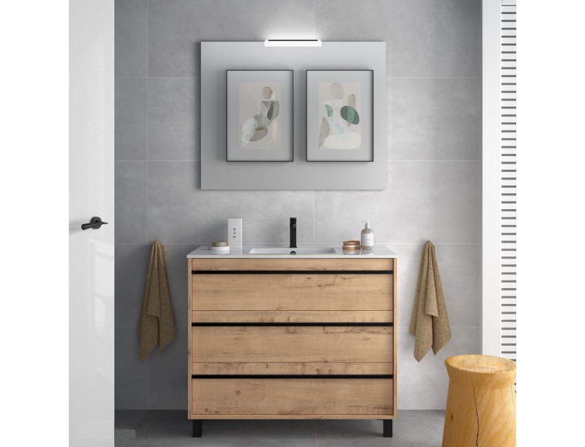 Mobile bagno a terra 100 cm Nevada in legno Rovere ostippo con lavabo in porcellana