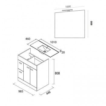 Dimensioni lavabo: L 101 x P 46 x H 19 cm (profondità vasca: 13 cm)