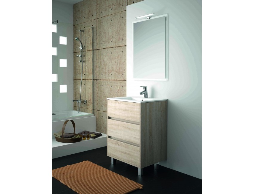 Mobile bagno a terra 600 in legno marrone Caledonia con lavabo Arena