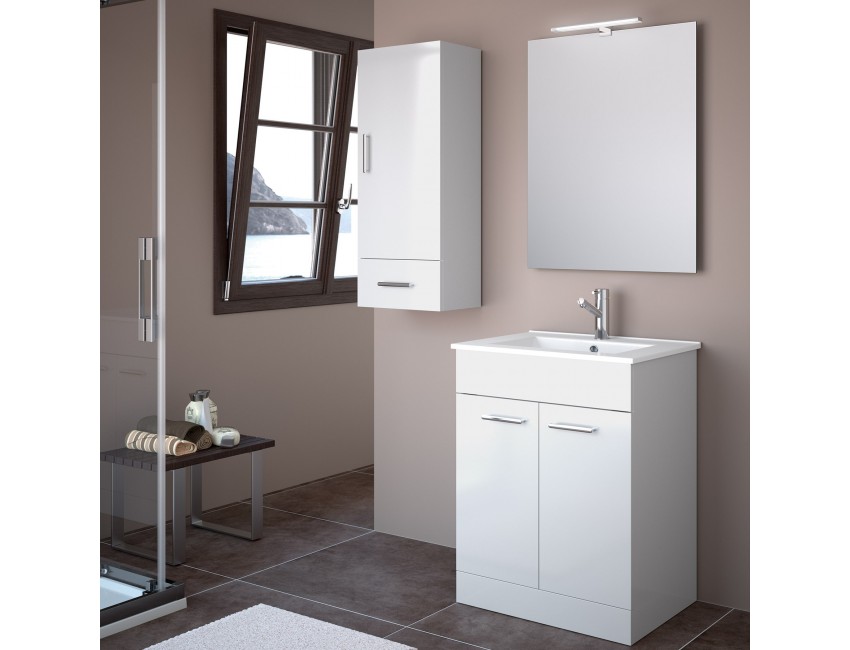 Mobile bagno 60 cm Feros in legno bianco lucido con lavabo