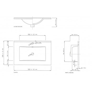 Dimensioni lavabo: L 51.5 x P 40 x H 18 cm (profondità vasca 13 cm)