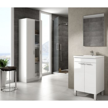 Mobile bagno a terra 50 cm bianco lucido con specchio
