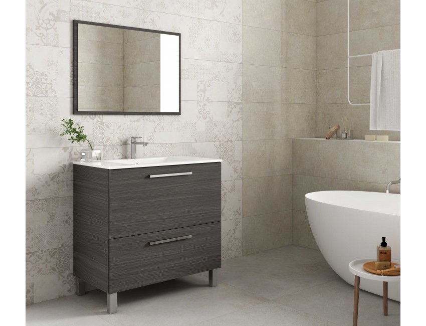 Mobile bagno a terra 80 cm grigio cenere con specchio