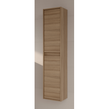 2) Colonna da bagno in legno, colore naturale, con 2 ante e 4 ripiani interni