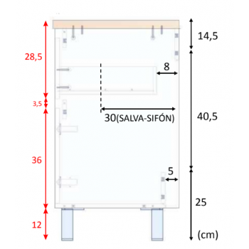 Peso massimo sopportato dal mobile 28 Kg. (lavabo non incluso)