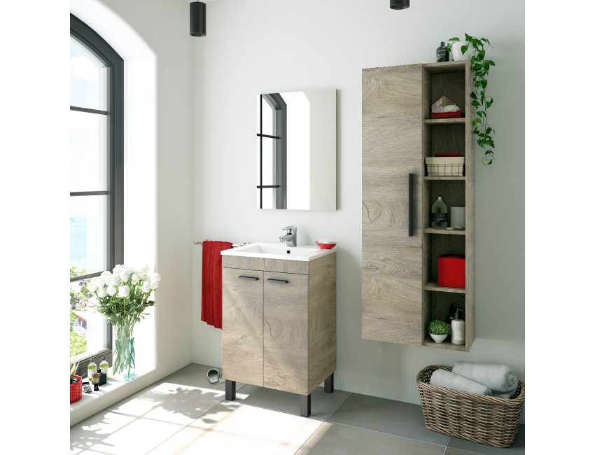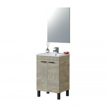 Mobile bagno a terra 50 cm Rovere con Specchio e Lavabo