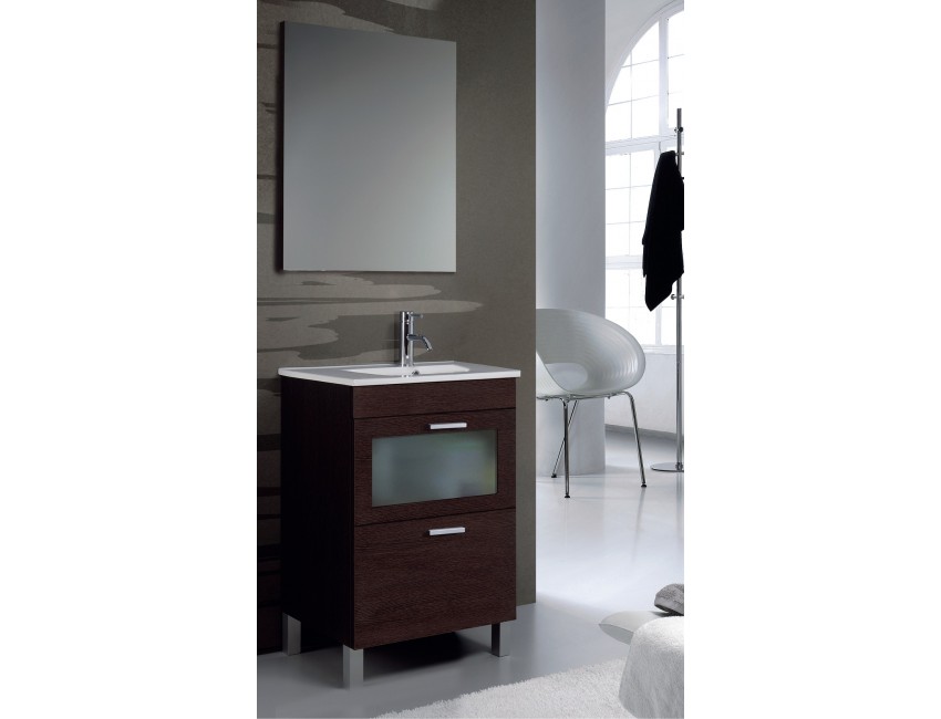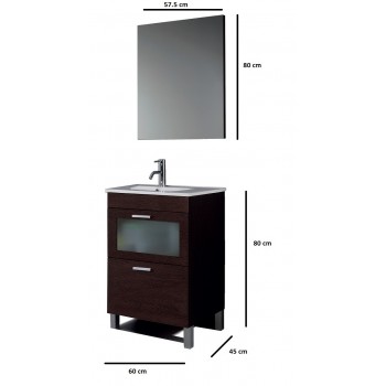 Mobile bagno a terra 60 cm Wenge con Lavabo e specchio