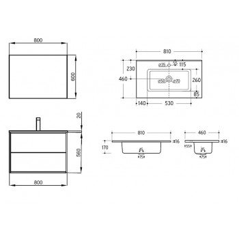 Dimensioni lavabo: L 81 x P 46 x H 1,9 cm (profondità vasca: 17 cm)