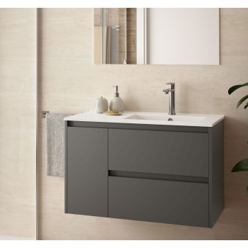 Mobile bagno sospeso 85 cm in legno grigio opaco con lavabo a destra