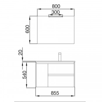 Dimensioni mobile: L 85,5 x P 46 x H 56 cm