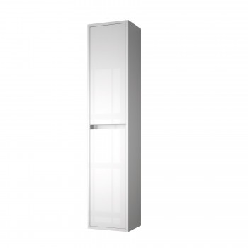 1) Mobile da bagno sospeso moderno in legno, colore bianco lucido, con 1 anta e 2 cassetti a chiusura ammortizzata