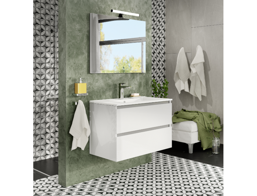Mobile bagno sospeso 80 cm Moon in legno Bianco Lucido con Lavabo in ceramica