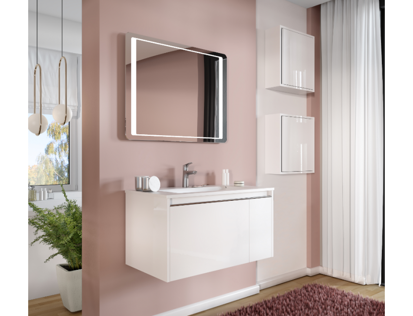 Mobile bagno sospeso 80 cm Sky in legno Bianco Lucido con Lavabo