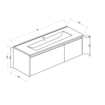 Dimensioni lavabo: L 81 x P 47 x H 13,5 cm