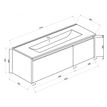 Dimensioni lavabo: L 101 x P 47 x H 13,5 cm