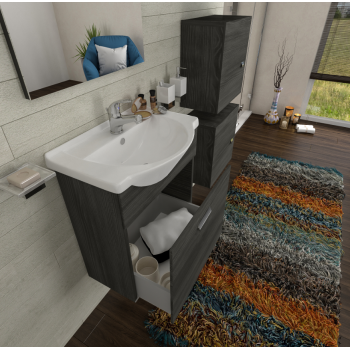 Mobile bagno sospeso 55 cm Holly in legno Rovere Bianco con un cassettone e Lavabo in ceramica