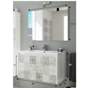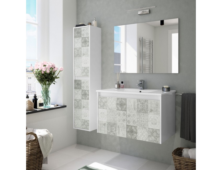 Mobile bagno sospeso 80 cm in legno Bianco Lucido e Mosaico con due ante