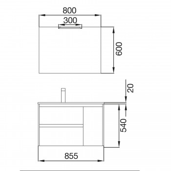 1) Mobile da bagno moderno colore rovere con 2 cassetti ed un'anta a chiusura ammortizzata e maniglia incassata integrata sul frontale del mobile che unisce funzionalità e design. Frontale e laterali sono fabbricati in laminato da 16 mm (classe E-1) con bordi in PVC (con colla PUR).