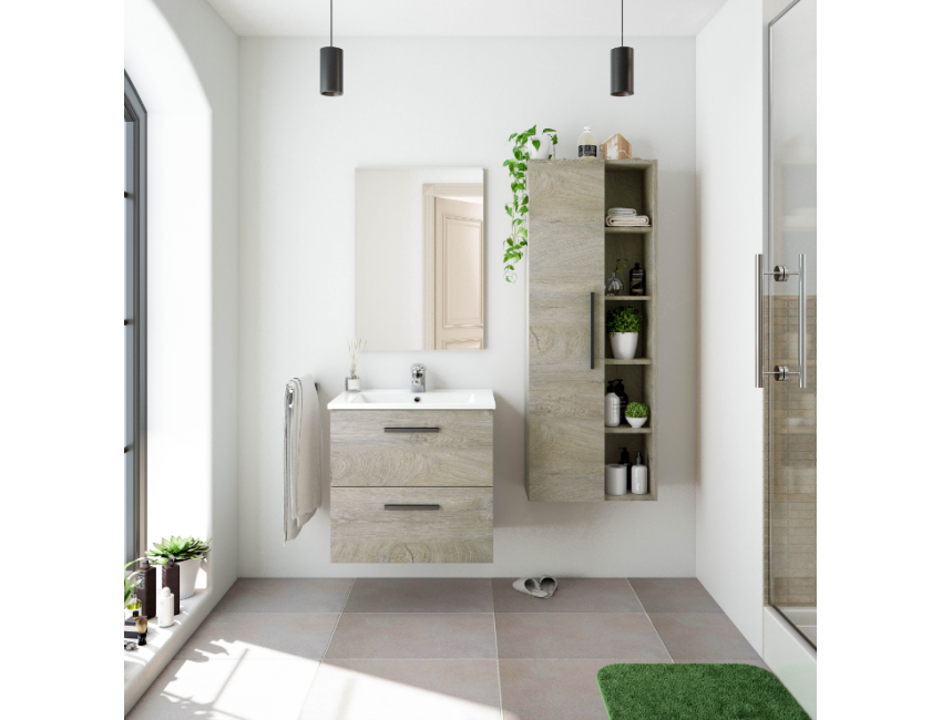 Mobile bagno sospeso 60 cm Rovere con lavabo e specchio