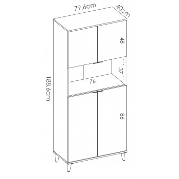 Mobile cucina 80x40x189 cm Anita Bianco opaco e Rovere naturale con quattro ante
