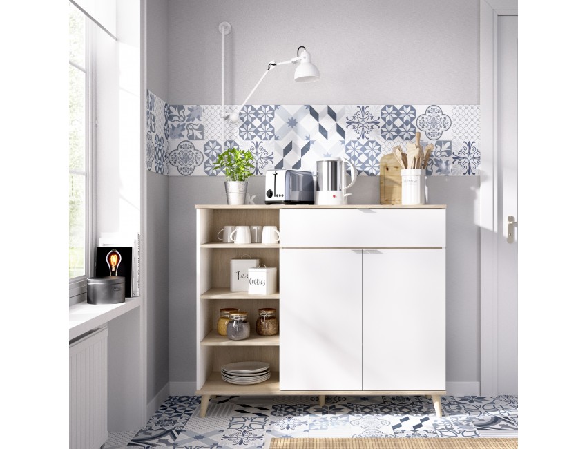 Mobile cucina 120x40x102 cm Anita Bianco opaco e Rovere naturale con due ante ed un cassetto