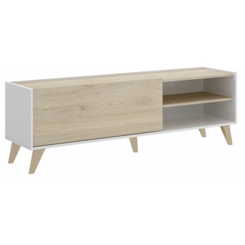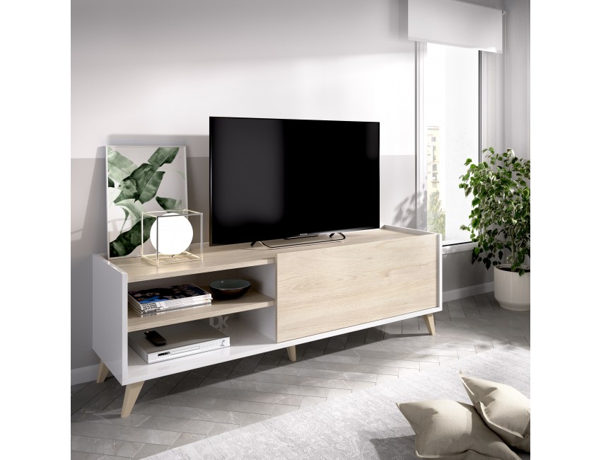 Mobile soggiorno porta Tv 155 cm Abby Bianco opaco e Rovere naturale con una ribalta e due vani